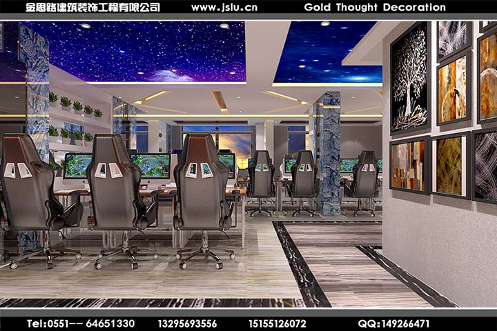 金思路裝飾,設(shè)計施工國家二級資質(zhì),安全生產(chǎn)許可證持有單位,專注工裝設(shè)計20年,專業(yè)值得信賴!金思路裝飾打造全新網(wǎng)咖模式,全新設(shè)計理念,以網(wǎng)咖運營為設(shè)計核心,一站式為您服務(wù),給用戶帶來好的體驗。我們做好每一個網(wǎng)吧設(shè)計服務(wù)環(huán)節(jié),力求精致,發(fā)揮團隊精神提供優(yōu)質(zhì)的網(wǎng)吧裝修設(shè)計服務(wù),打造令您滿意的作品!