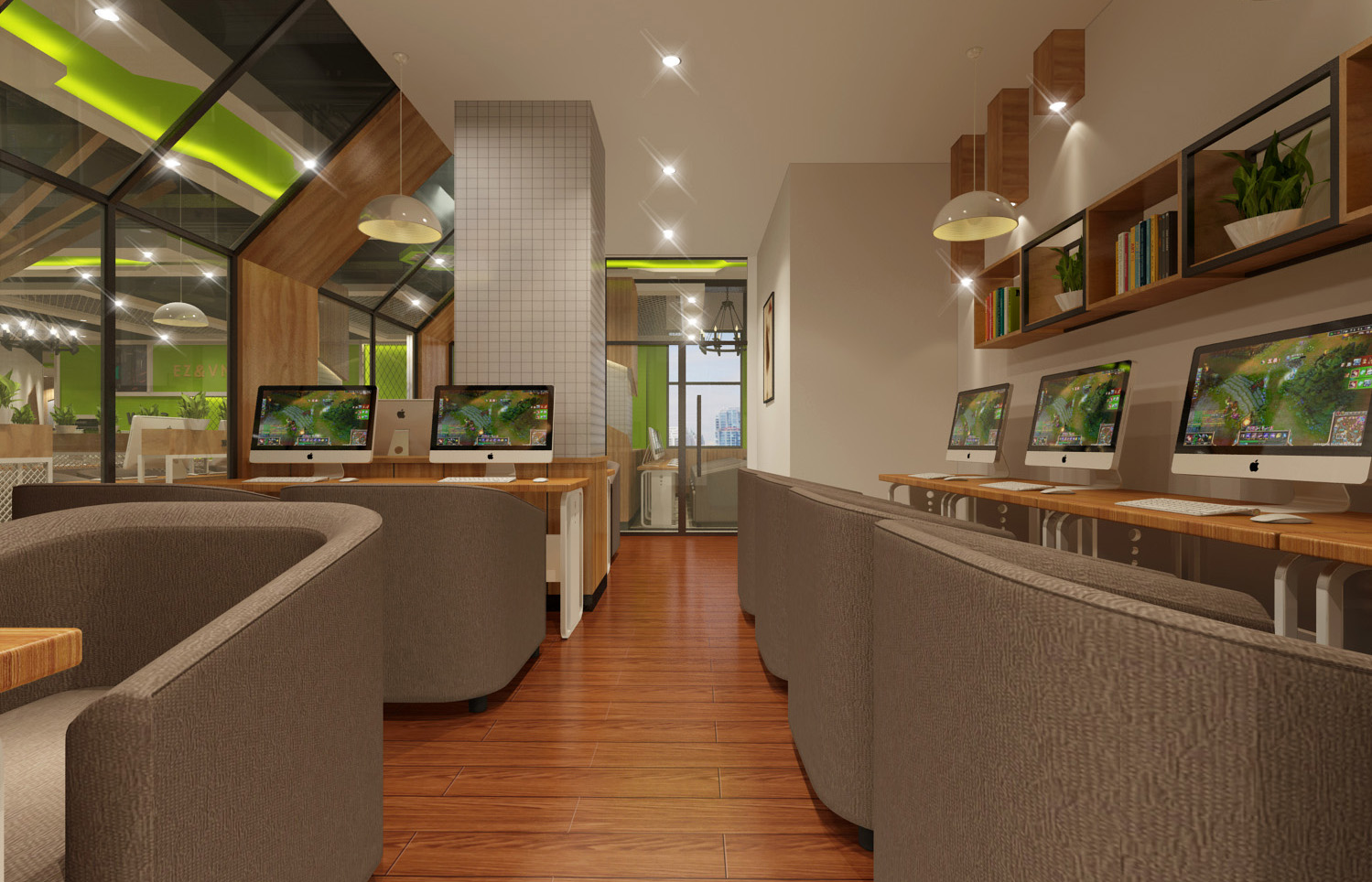 網(wǎng)吧的空氣是否新鮮,座位是否寬敞舒適,私密性是否好,裝修是否夠逼格,已經(jīng)成為網(wǎng)友潛意識里要求的東西。當(dāng)然網(wǎng)吧的布局功能分區(qū)也需要很好的設(shè)計,當(dāng)網(wǎng)吧有一定的規(guī)模的時候,網(wǎng)吧裝修的效果跟想的還是有差距的。